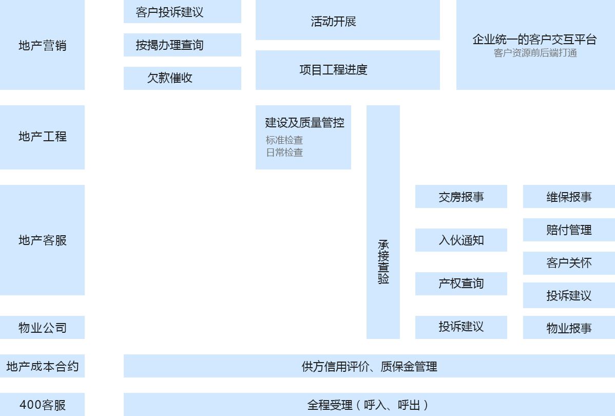 面向客戶為主的功能應(yīng)用,實(shí)現(xiàn)客戶與開(kāi)發(fā)商的實(shí)時(shí)交互、及時(shí)掌握客戶關(guān)心的質(zhì)量問(wèn)題